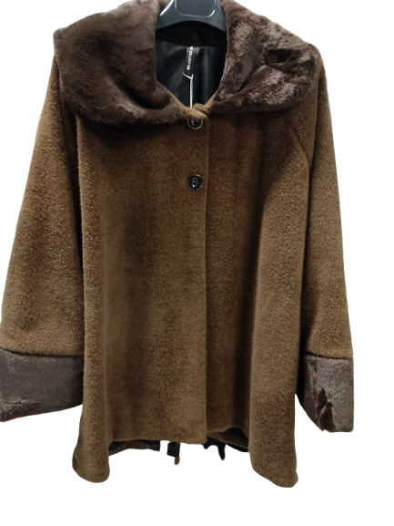 Giaccone foderato con ecopelliccia al collo e alle maniche
