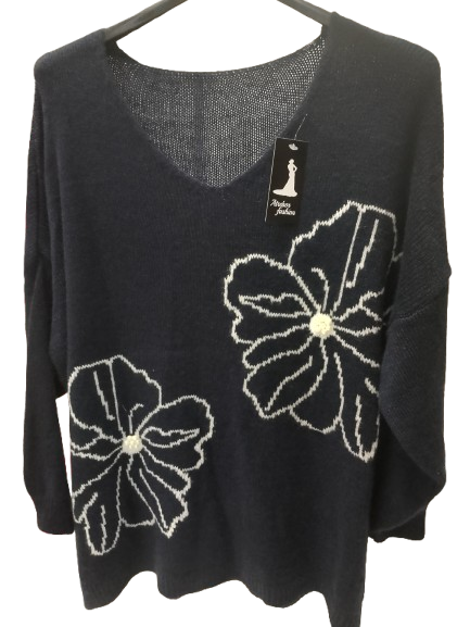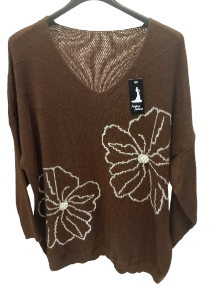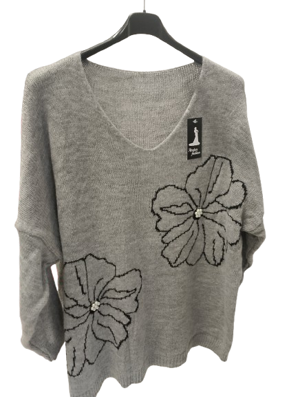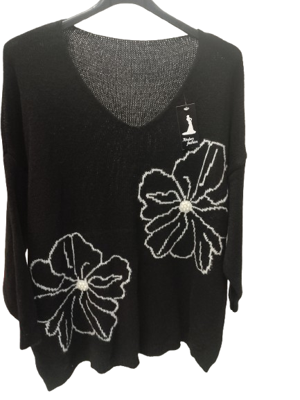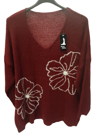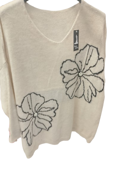 Maglioncino over con fiori e perline