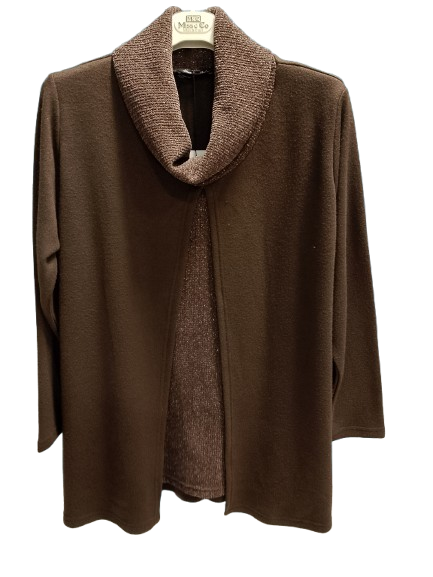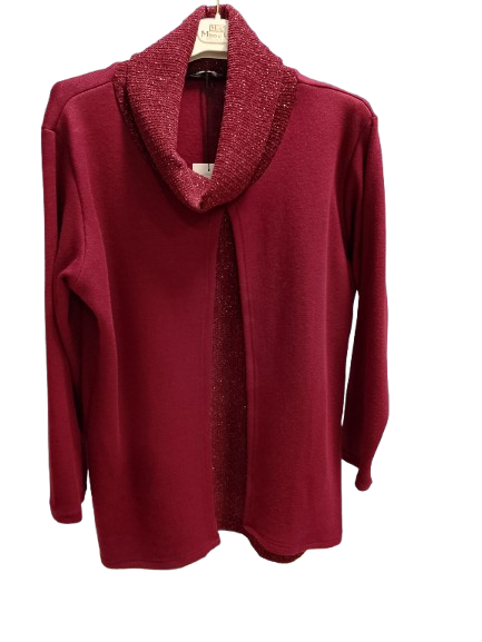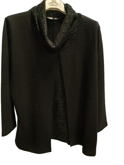 Maglioncino dolcevita con collo a ciambella, apertura anteriore conigliato laminato