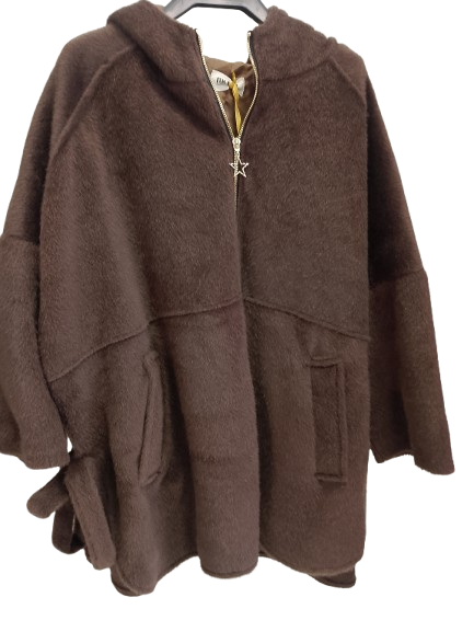 Pelliccetta con cappuccio tasche zip e fiocco laterale espandibile